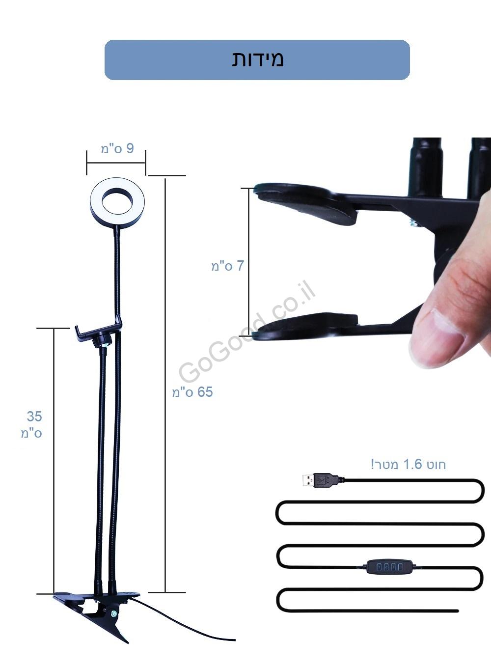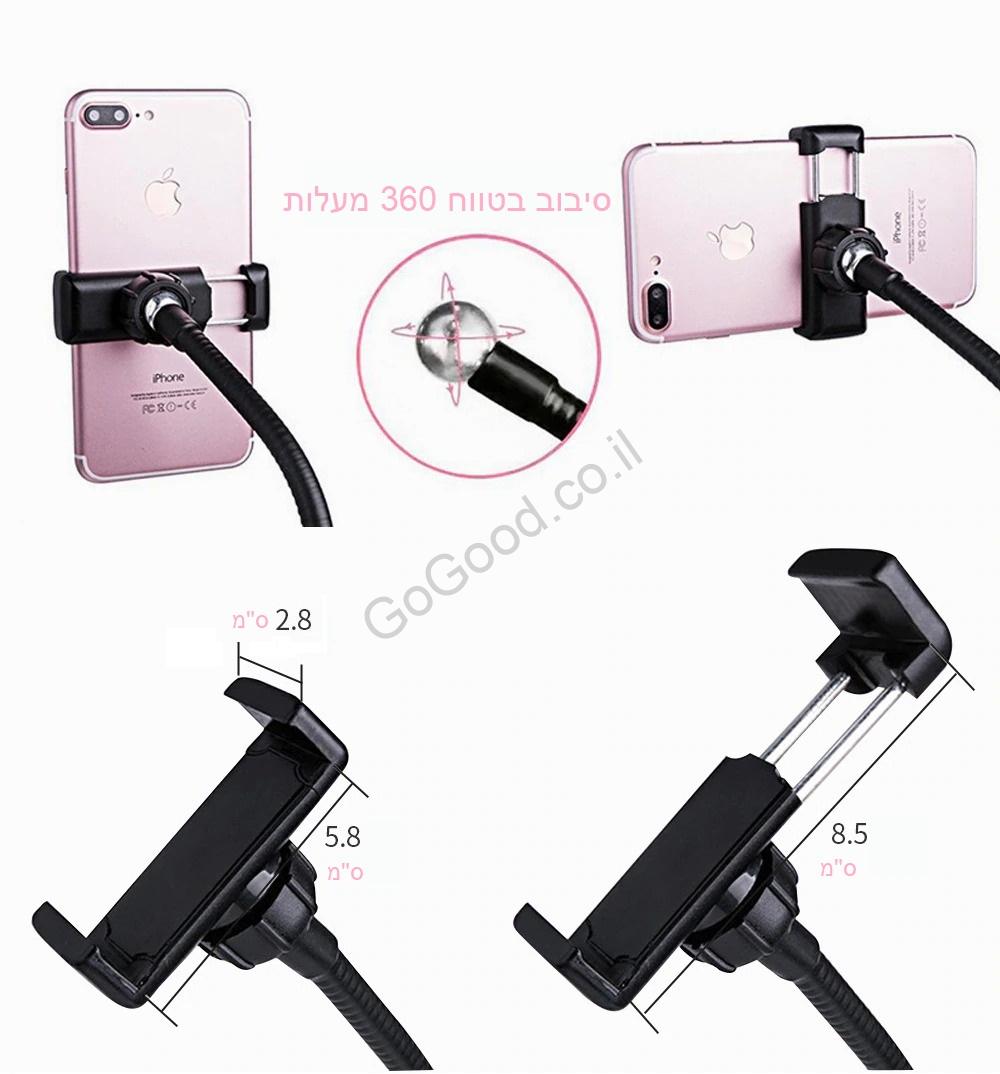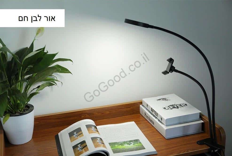 • זרועות מתכת גמישות לזווית אידיאלית.