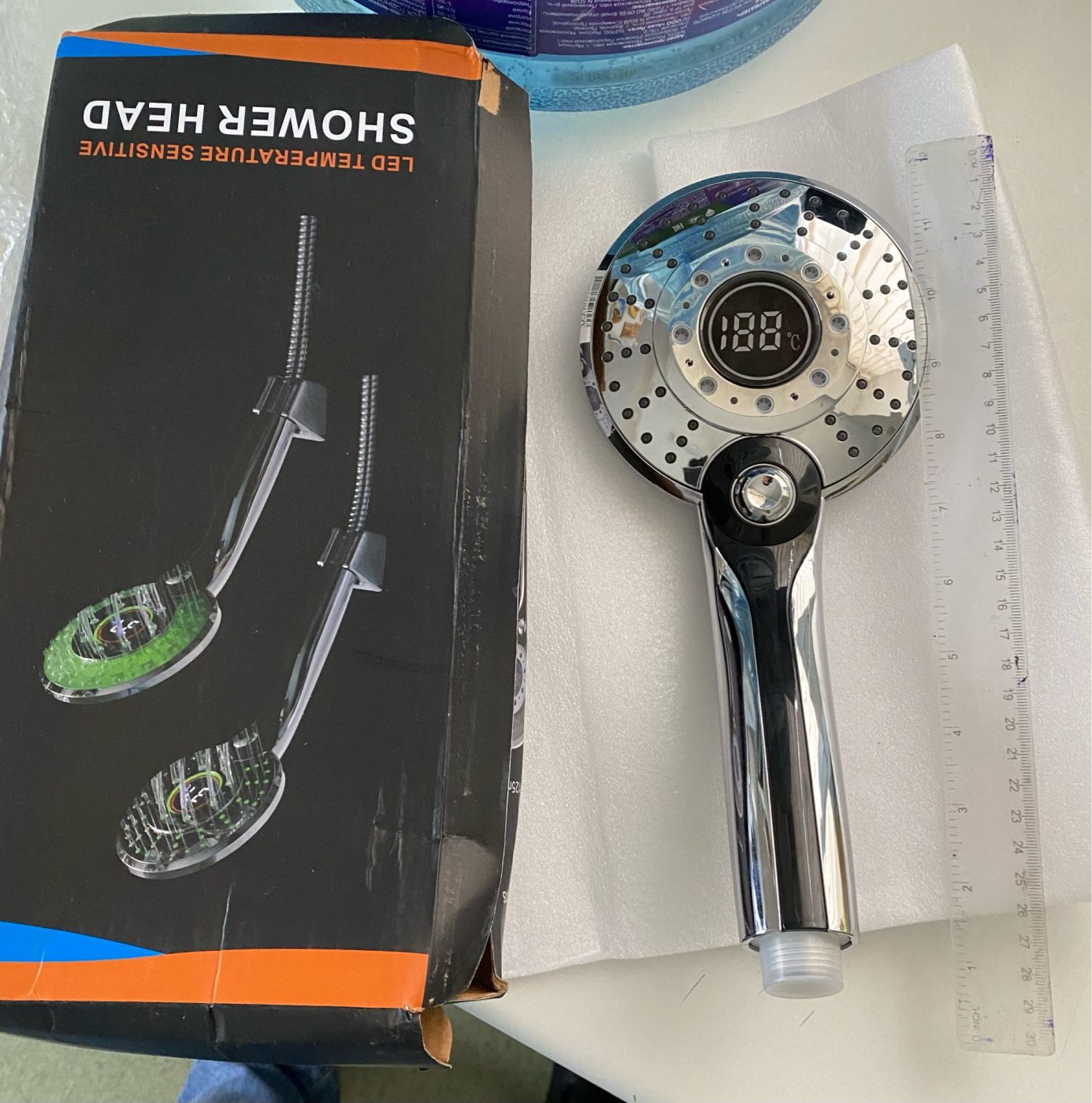 עובד מצוין וגם עושה אווירה במקלחת. תראו איזה יופי!!